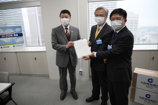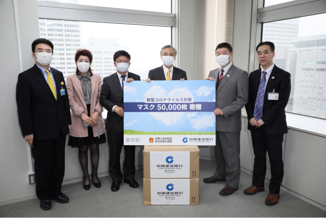 新型コロナウイルスの感染拡大を受け、中国建設銀行東京支店は中国本店の協力のもと、マスクの需要が急増している東京都に対し、310日に駐日中国大使館を介して東京都にマスク5万枚を寄贈した。